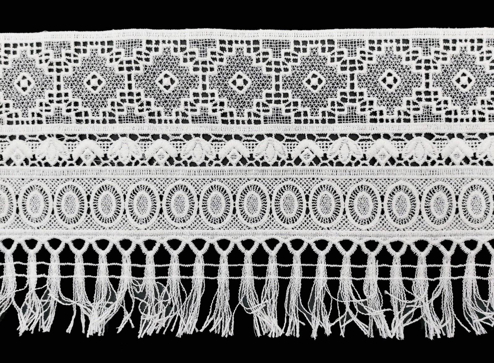 Lista Macramè Tessuto Viscosa Cotone Quadrettato e Ricamo In Cotone