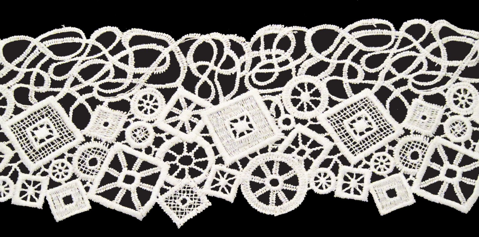 Lista Tulle Cotone Con Smerlo Disegno Doppio Fiore